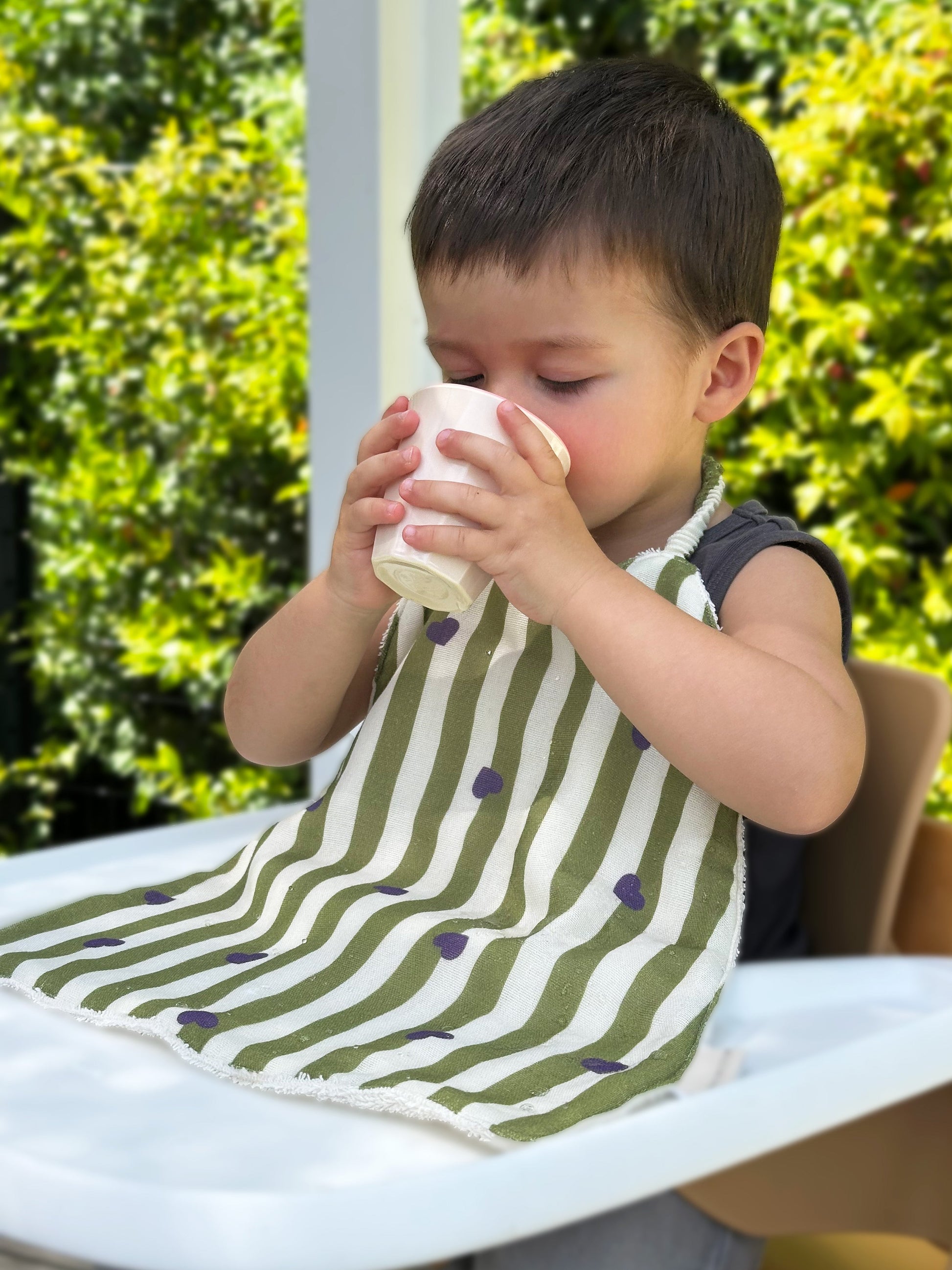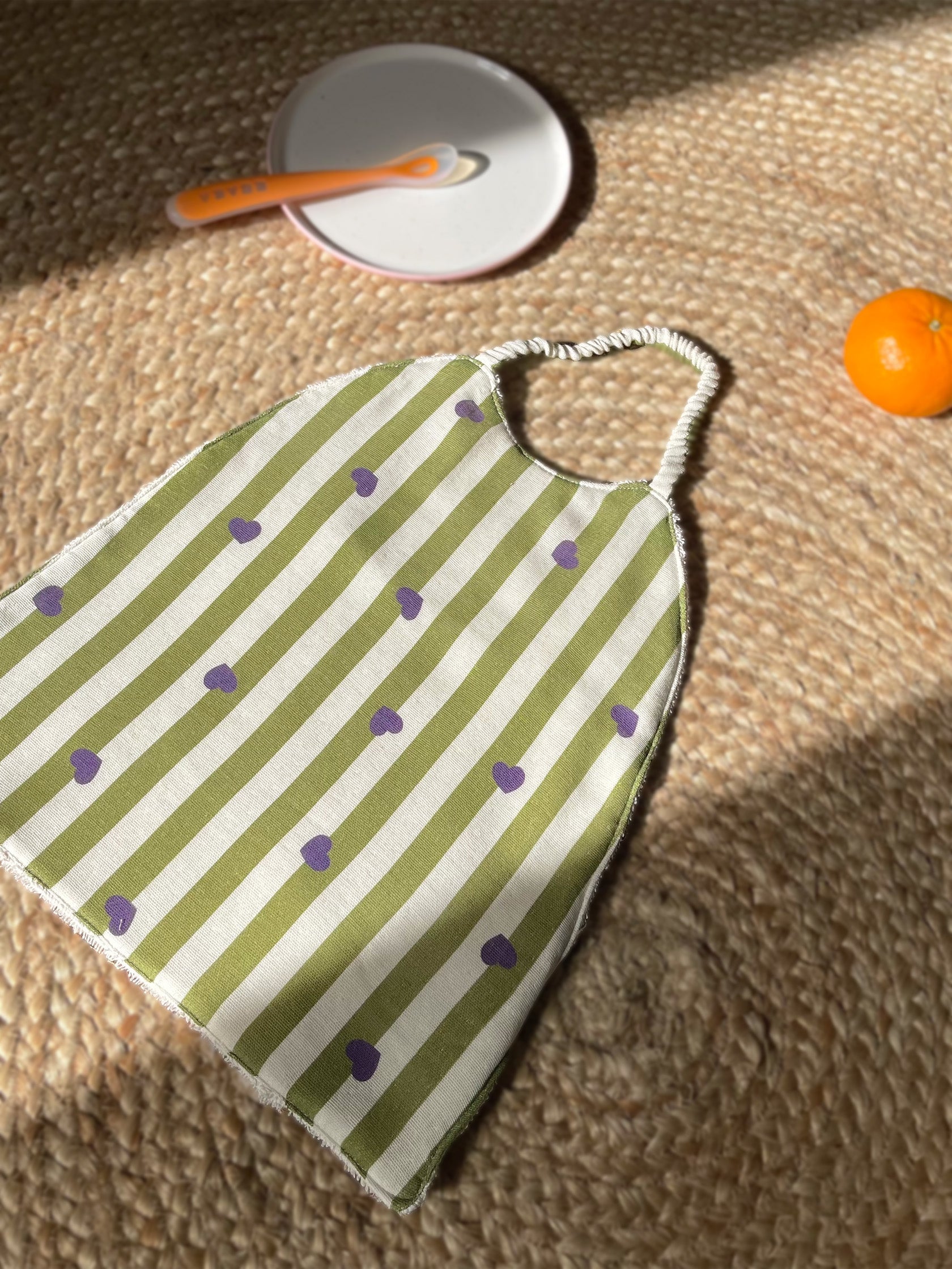 - Grand bavoir en coton pour bébé, imprimé rayures et cœurs