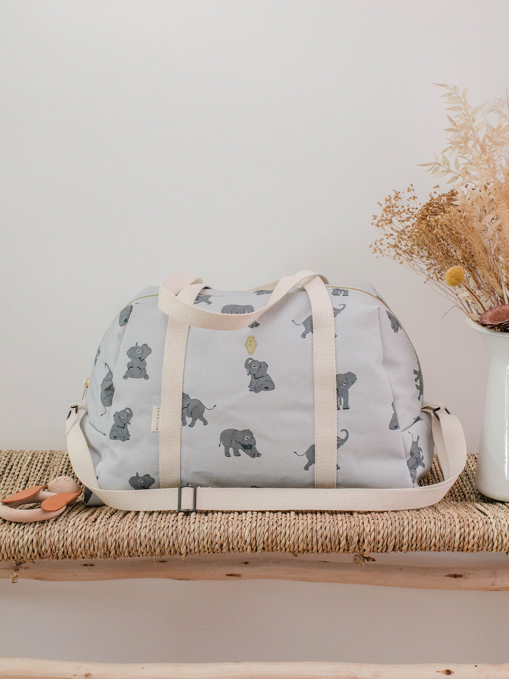 - Sac à langer Pachy, rembourré avec une grande ouverture zippée dorée, 3 poches intérieures, 3 poignées dont une réglable
