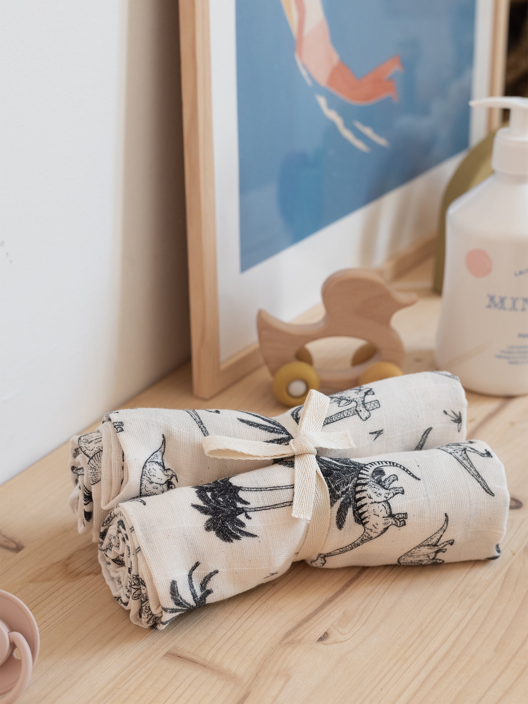 - Ensemble de deux langes en coton à motif bébé T-Rex