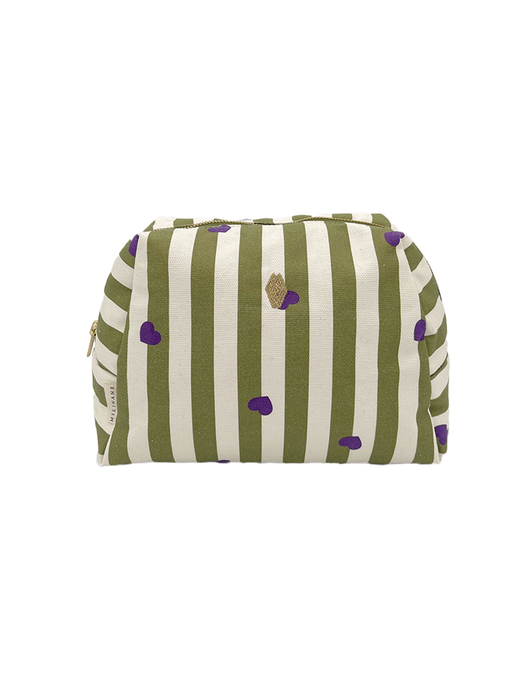 - Jolie trousse de toilette en polaire à motif rayures et amour, avec une poche intérieure.