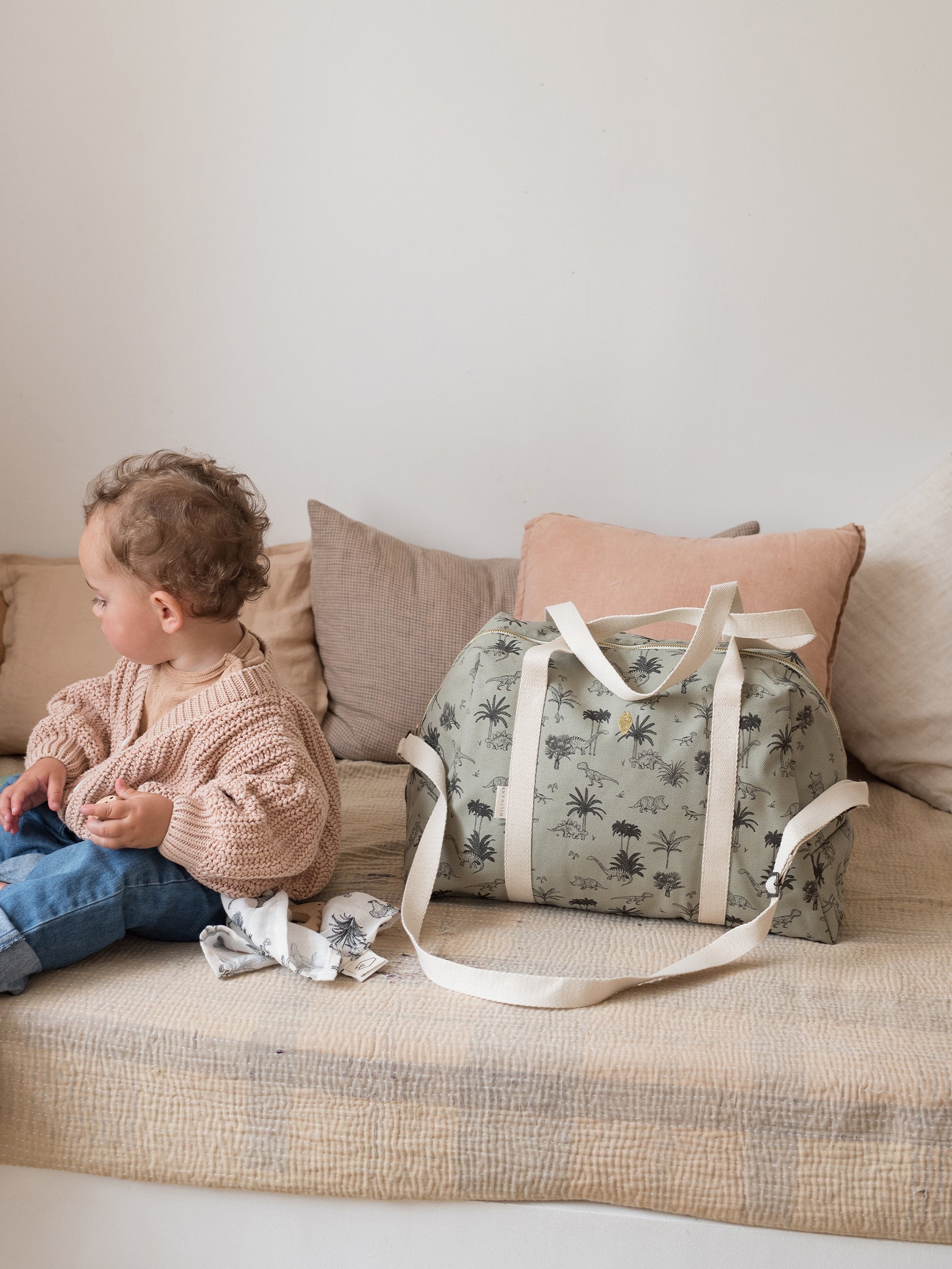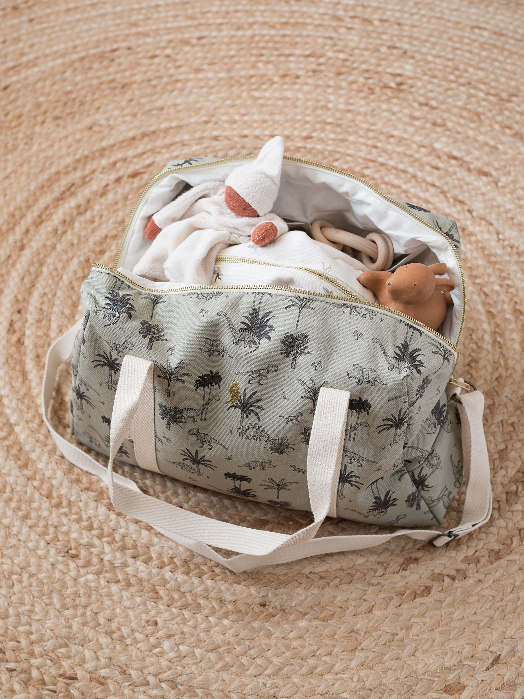 - Sac à langer Baby T-Rex en polaire avec une grande fermeture éclair dorée, 3 poches intérieures, 3 poignées dont une réglable