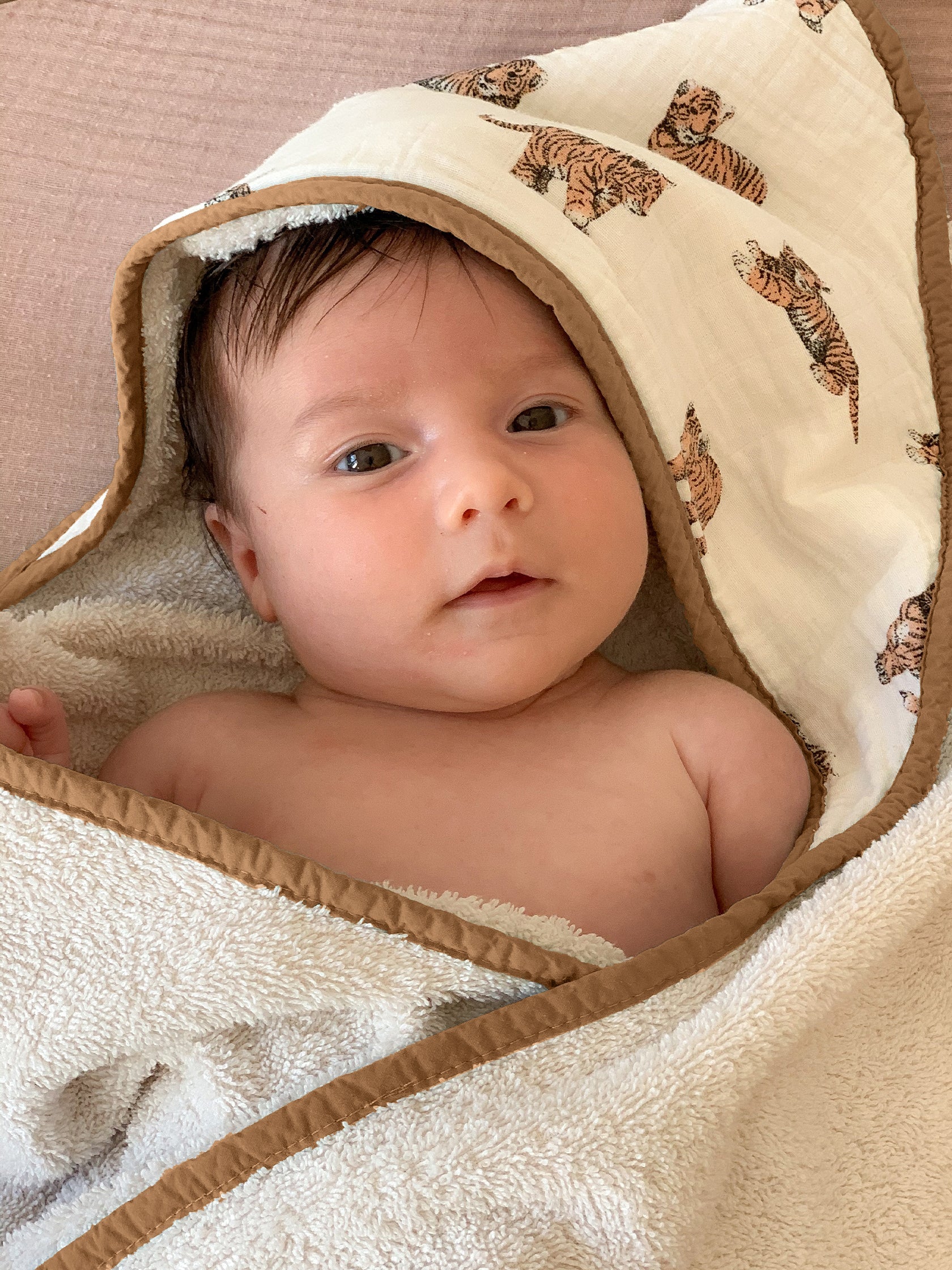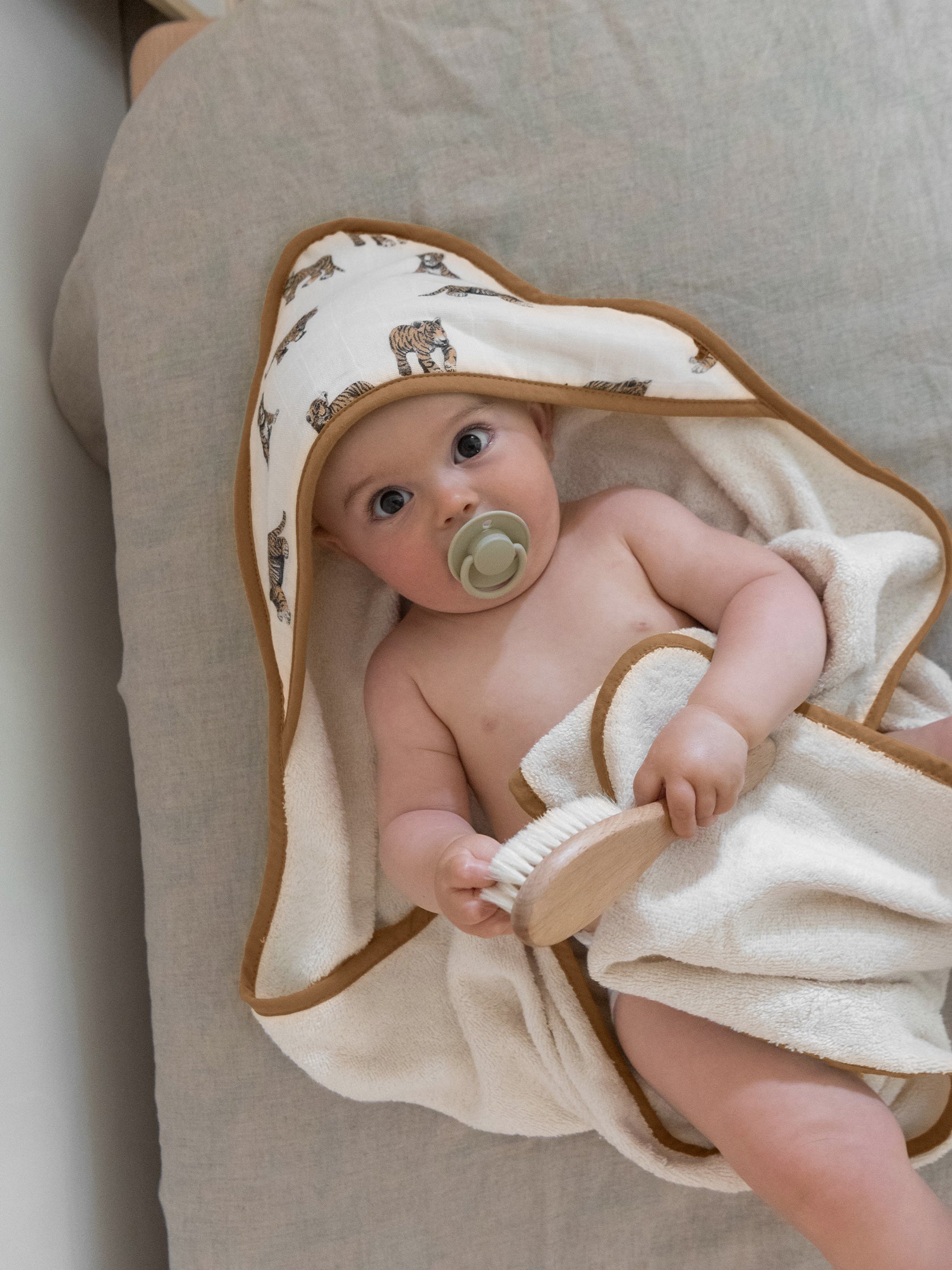 - Composition : gaze 100 % coton et éponge 100 % coton