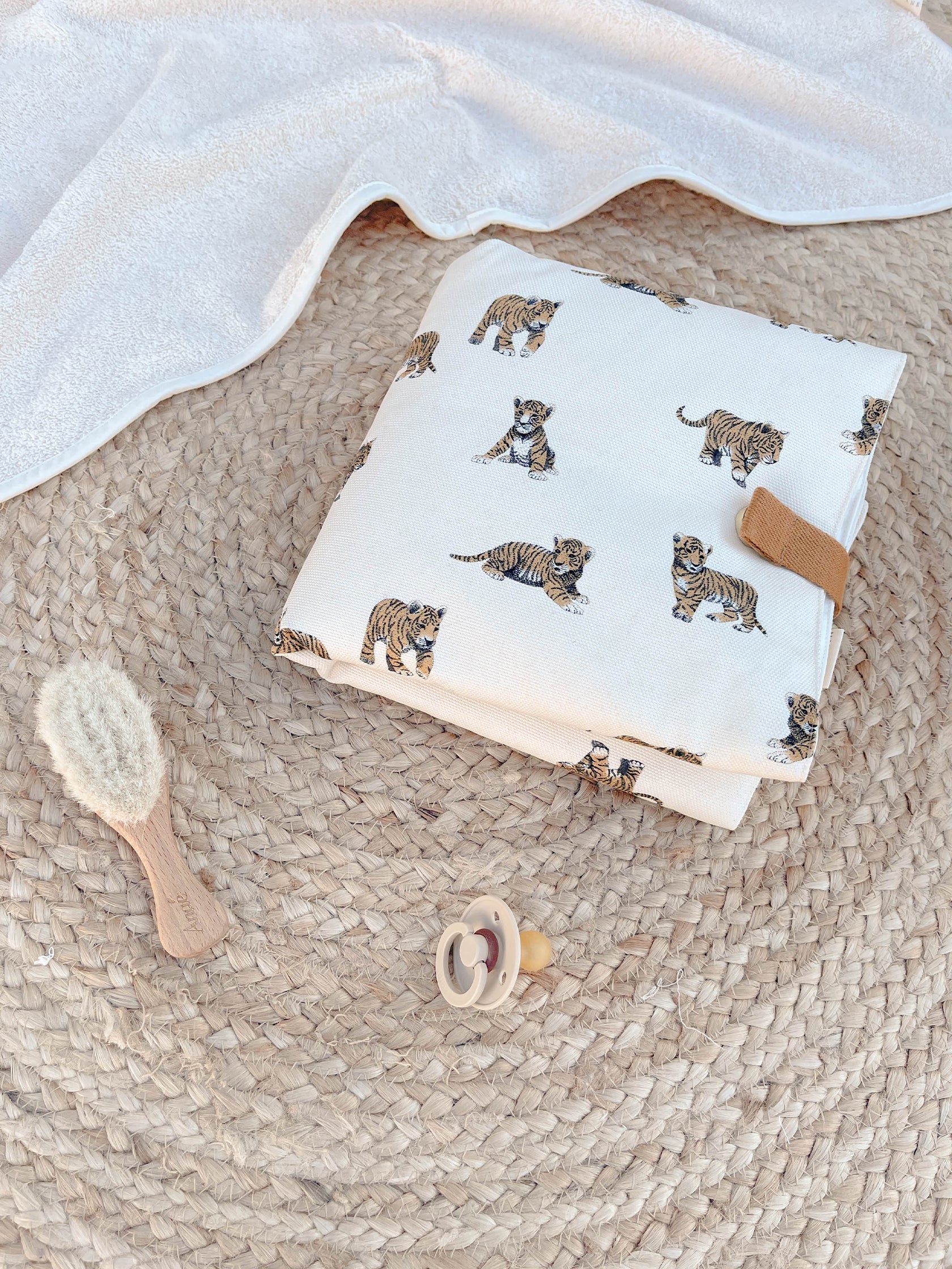 - Matelas à langer de voyage en polaire à imprimé tigre marron